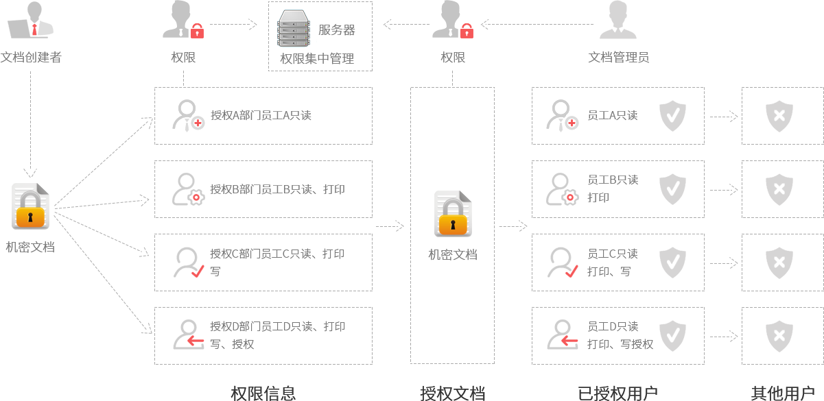 文档数据加密主要功能:全面的加密模式、智能反截屏控制、文件级的权限管理、文件外发控制、严苛的防冒充控制、屏幕与进程浮水印、多层次文件密级管理、智能邮件白名单 桌面管理、身份认证集成、行为审计、风险预警报表、资产管理、网警控制中心、容灾保护机制、灵活自定义界面、实时通讯工具、跨平台支持